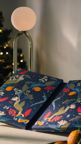 - 	Le calendrier de l'Avent "Days of Joy" : un joli calendrier avec 24 cases, chacune contenant un sachet de tisane. La nouveauté de 2023 est l'ajout du 'Winter Warmer', une nouvelle saveur de thé spécialement développée par Pukka pour les fêtes.