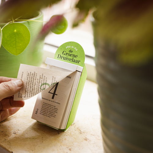 De Groene Druivelaar bouwt verder op een stuk Vlaamse erfgoed. Als groene tegenhanger van De Druivelaar, een van de populairste kalenders in Vlaanderen, draagt deze nieuwe editie dezelfde liefde voor het dagelijkse ritueel van een blaadje afscheuren, maar dan met een duurzame insteek.