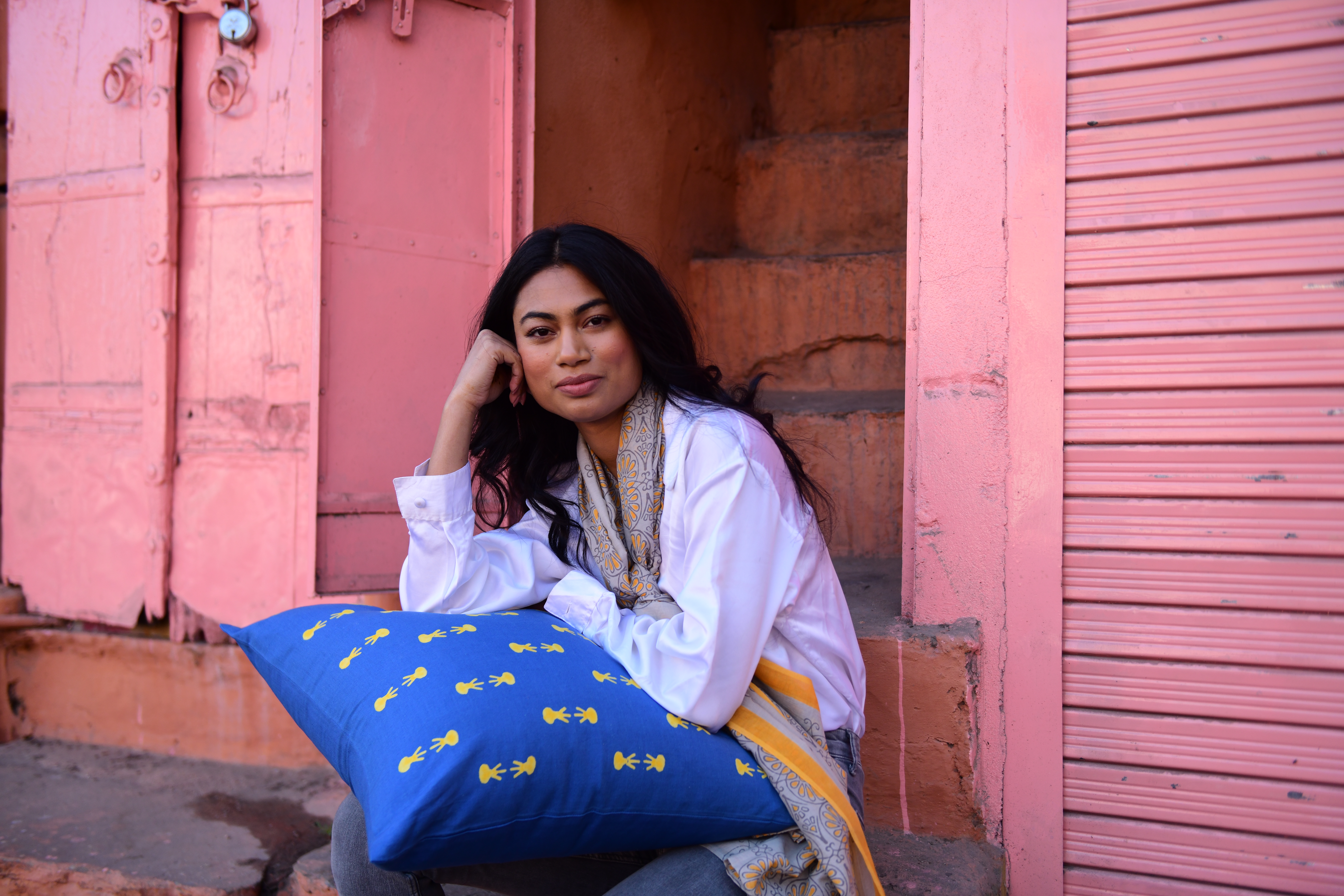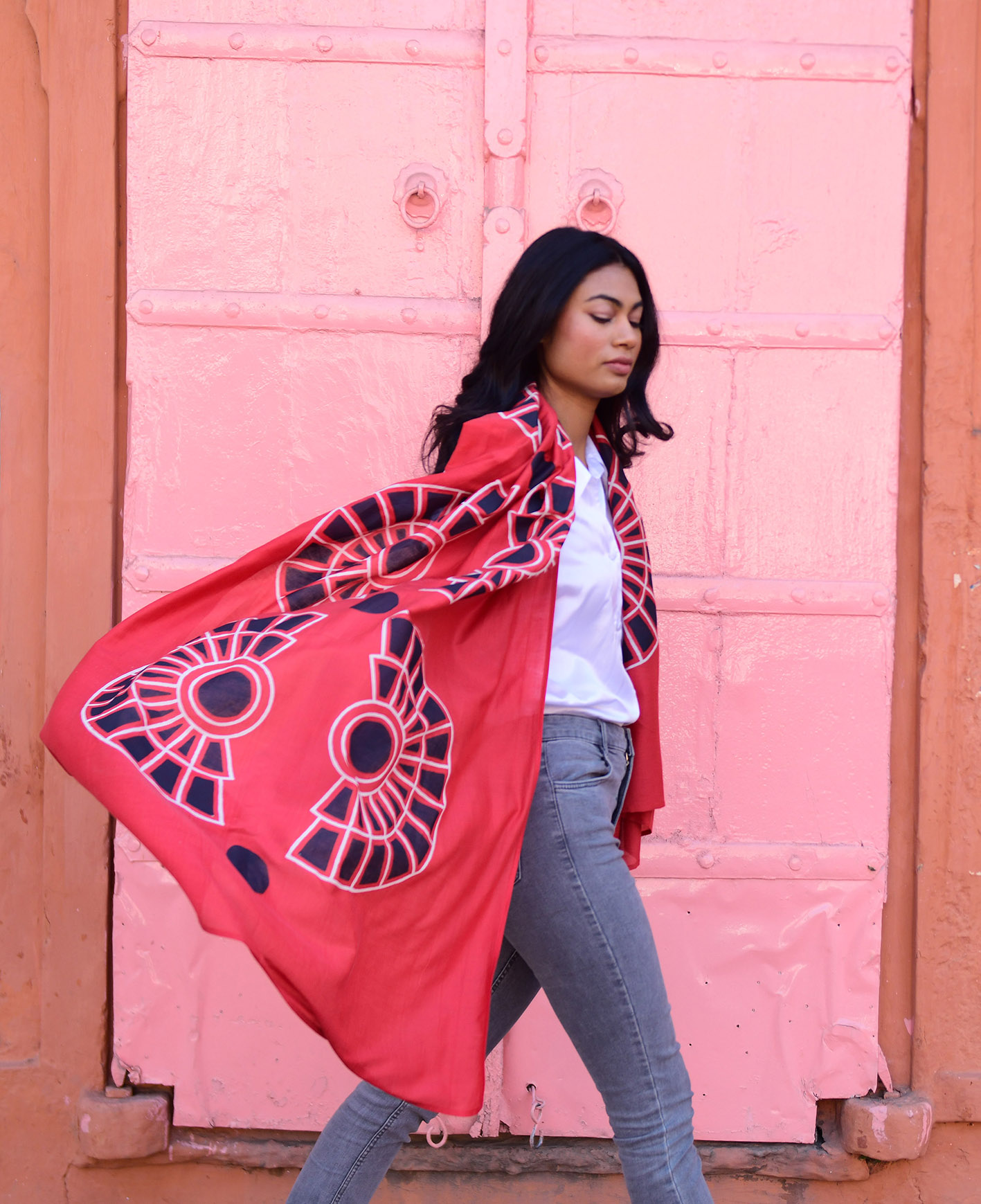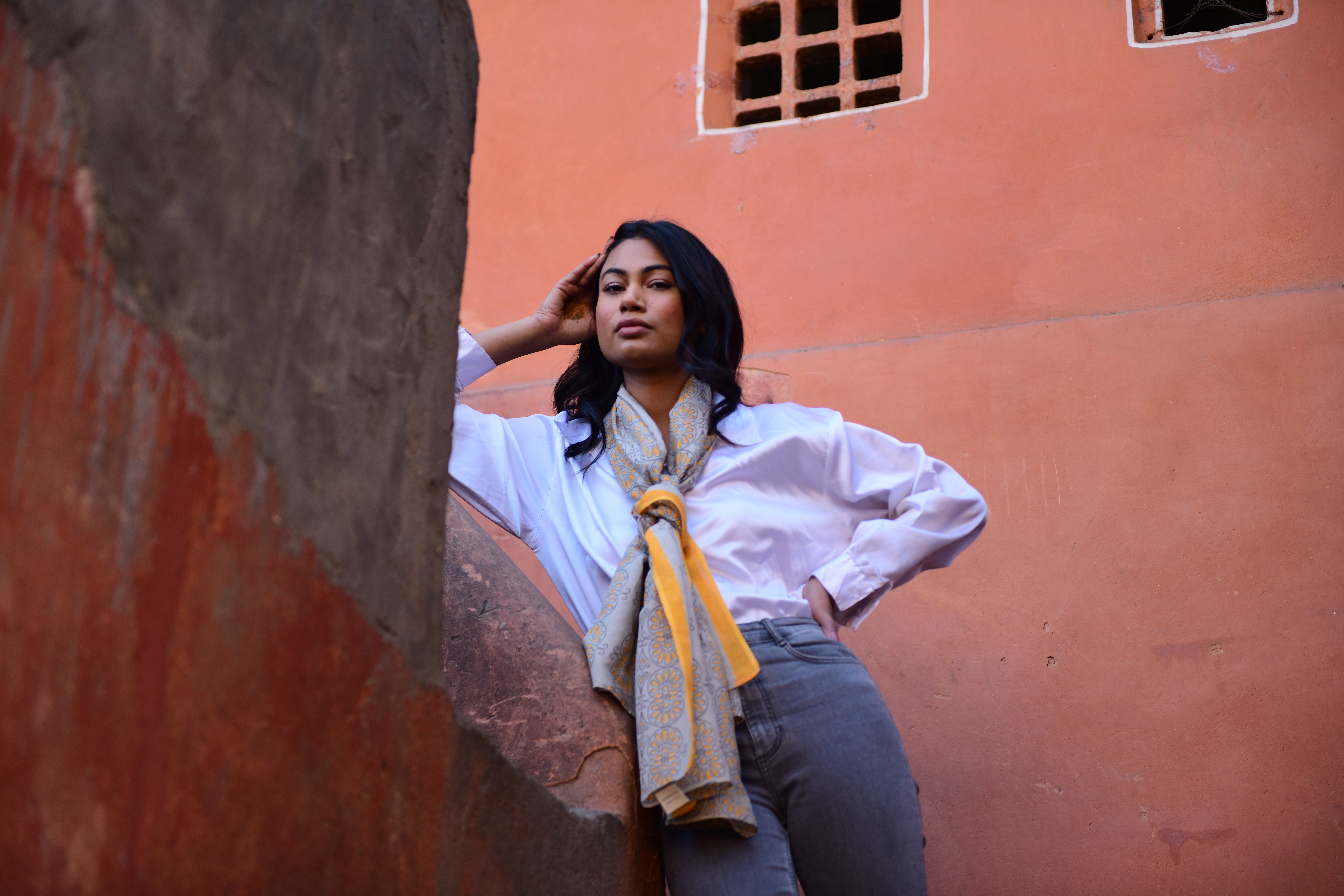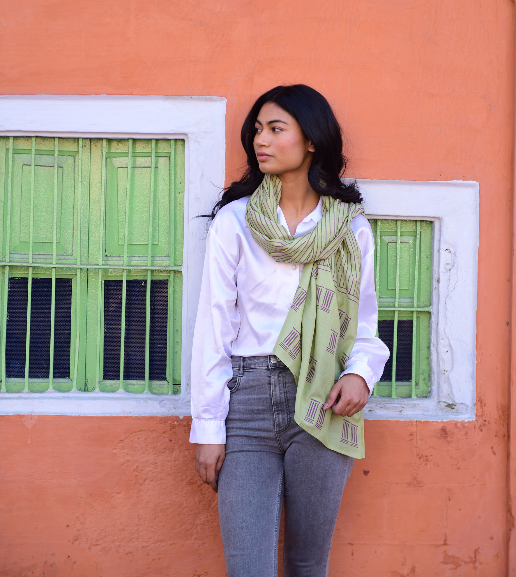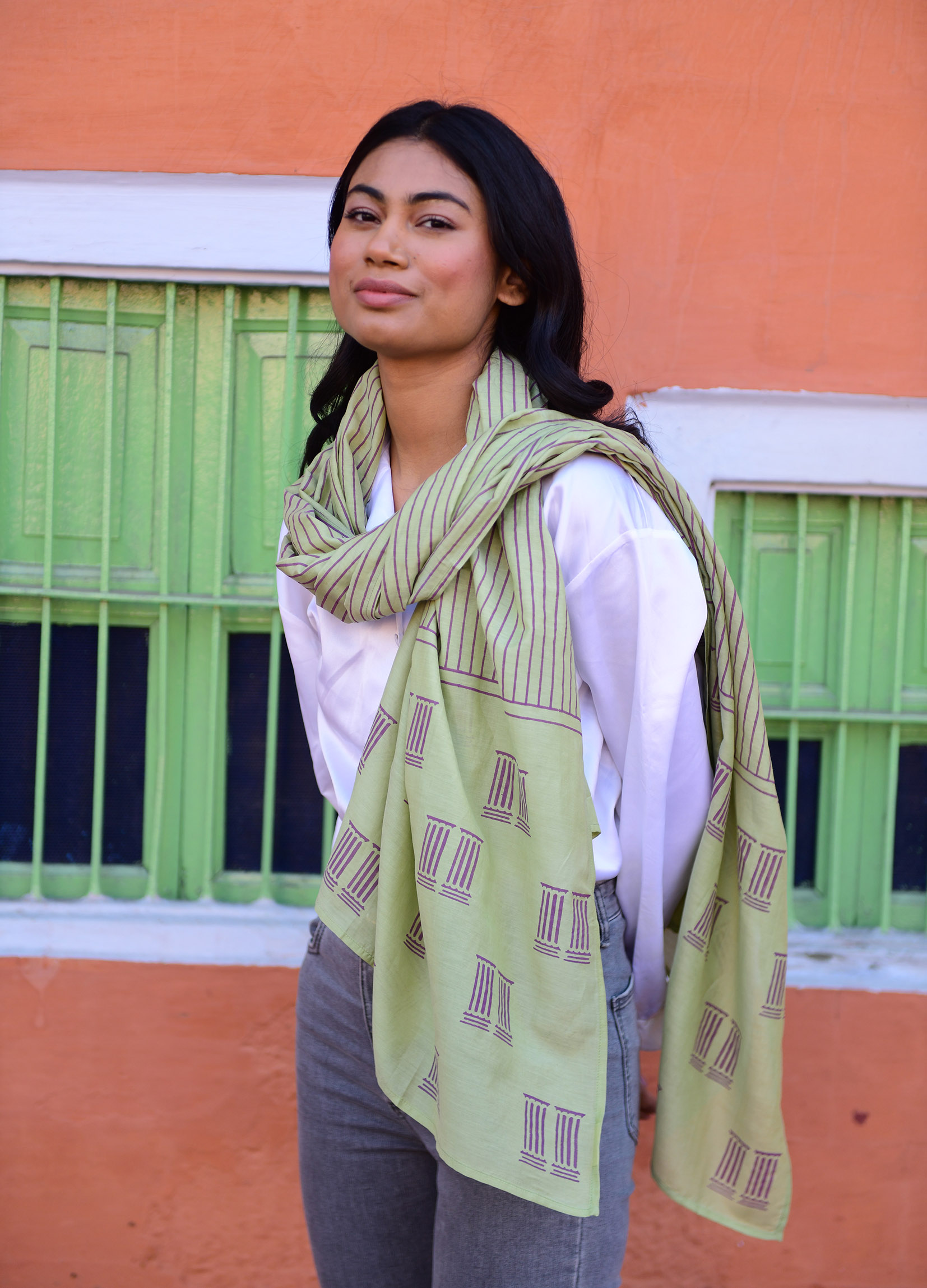 De sjaals worden met de hand block printed in Rajasthan en zijn gemaakt van een zachte silk-cotton blend (55% zijde, 45% katoen). Met een formaat van ongeveer 86 x 86 cm zijn ze veelzijdig te stylen: los rond de hals, nonchalant over de schouders, in het haar of als subtiel accent aan een tas.